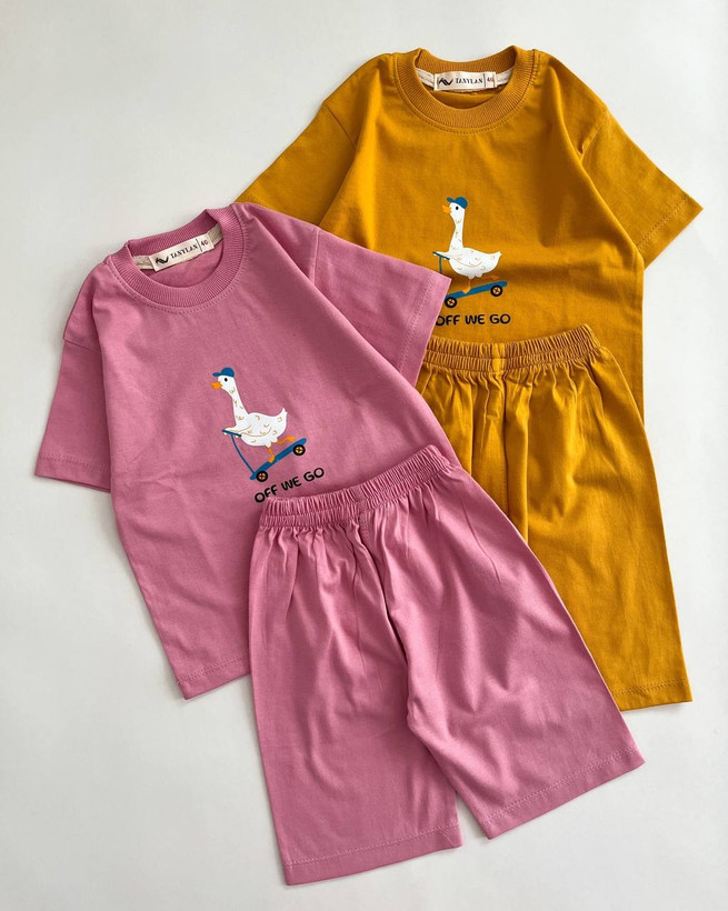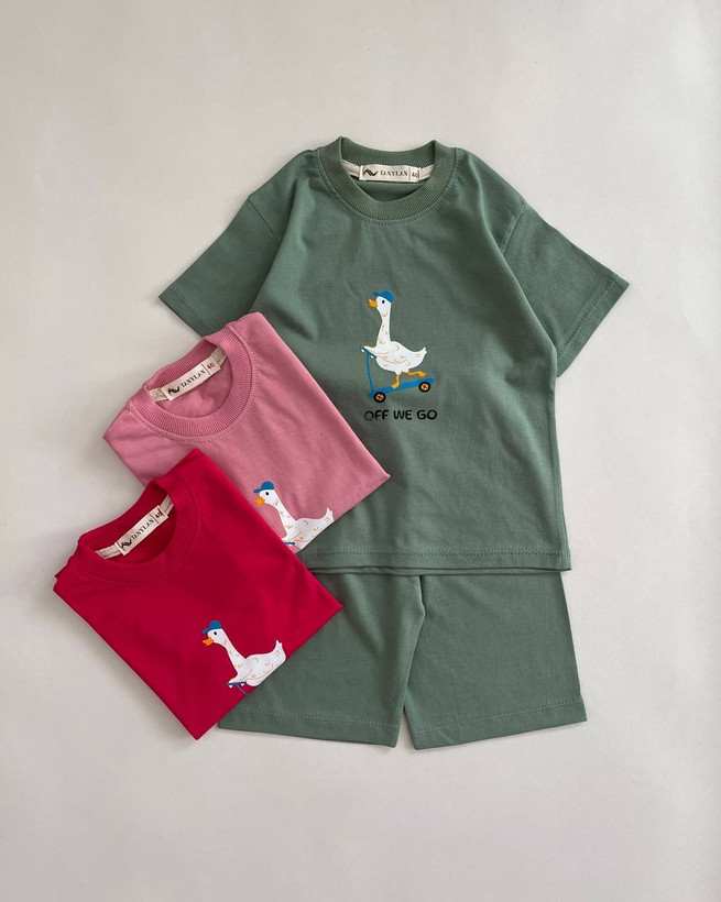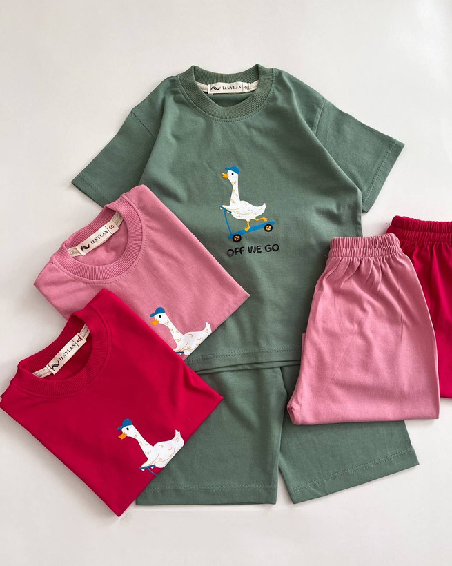 ست تیشرت شلوارک اسپرت طرح اردک پنبه نخ درجه یک سایز۴۰/۴۵/۵۰/۵۵