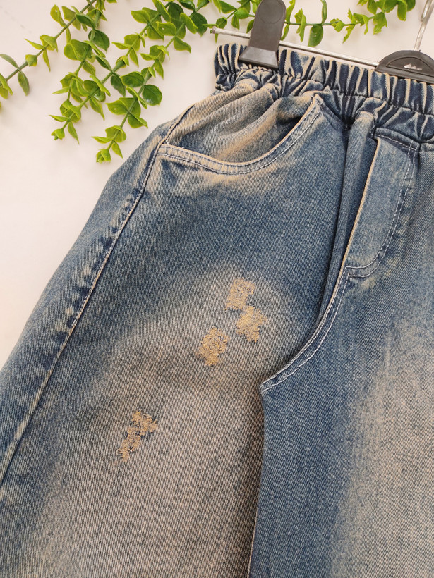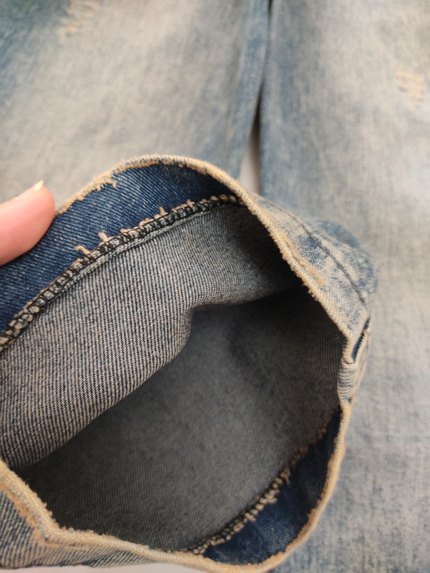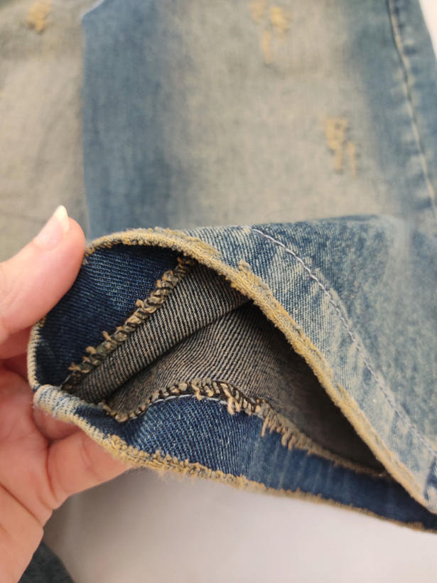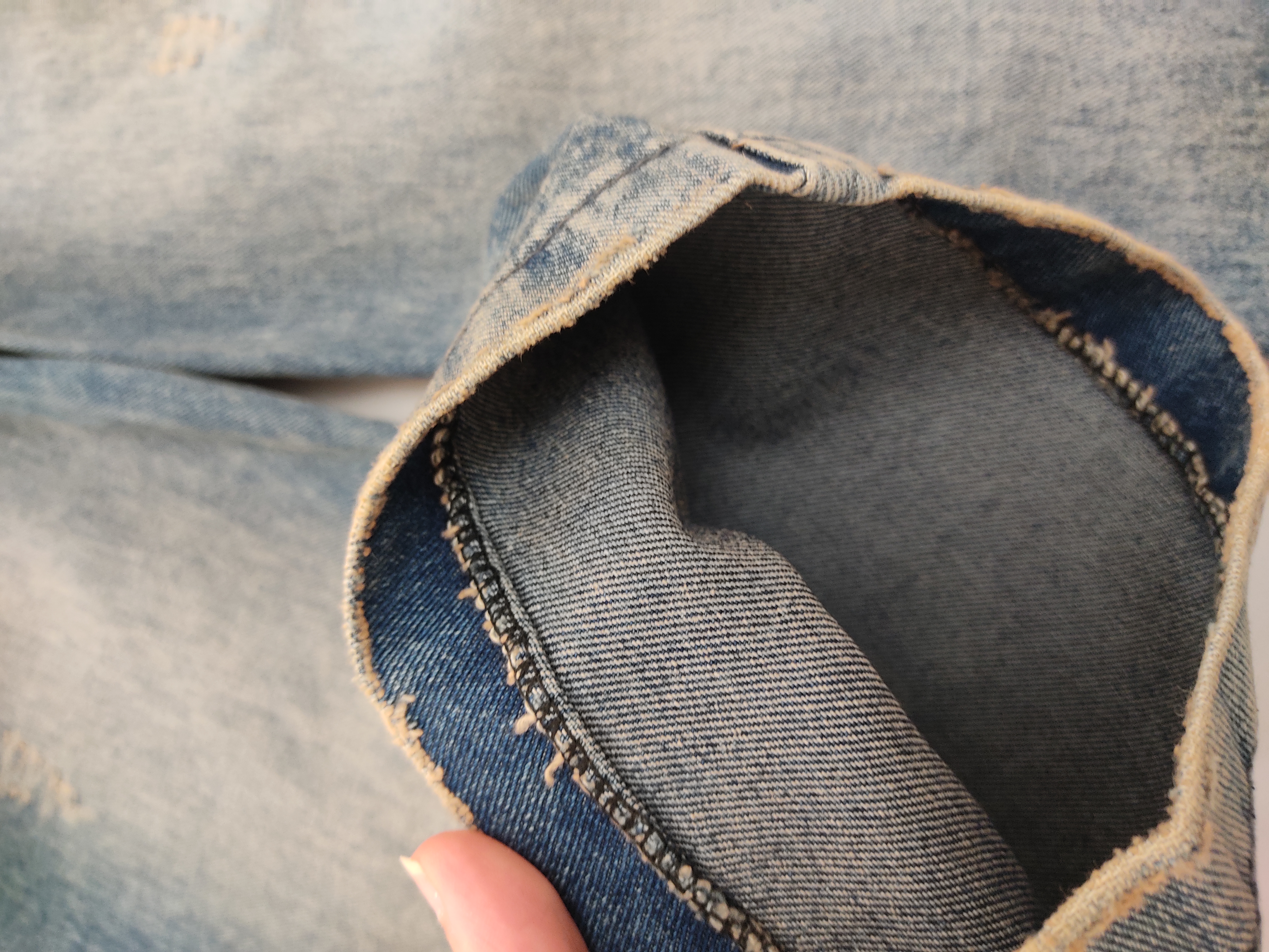 🧵جنس؛ جین پنبه ای شست شده گِرَم متوسط (کاغذی نیست گِرم بالا و زمستونی هم نیست چهار فصل)